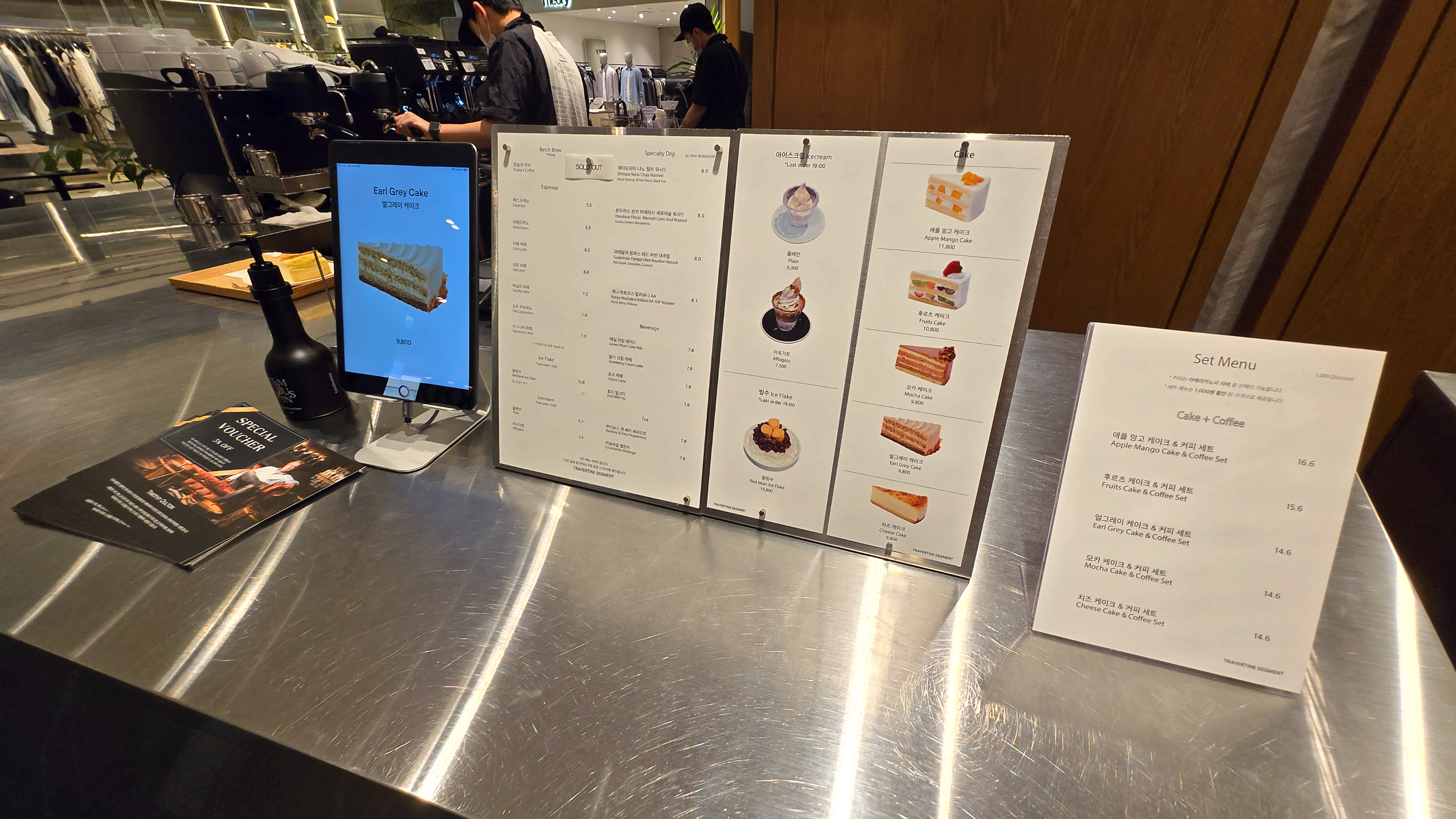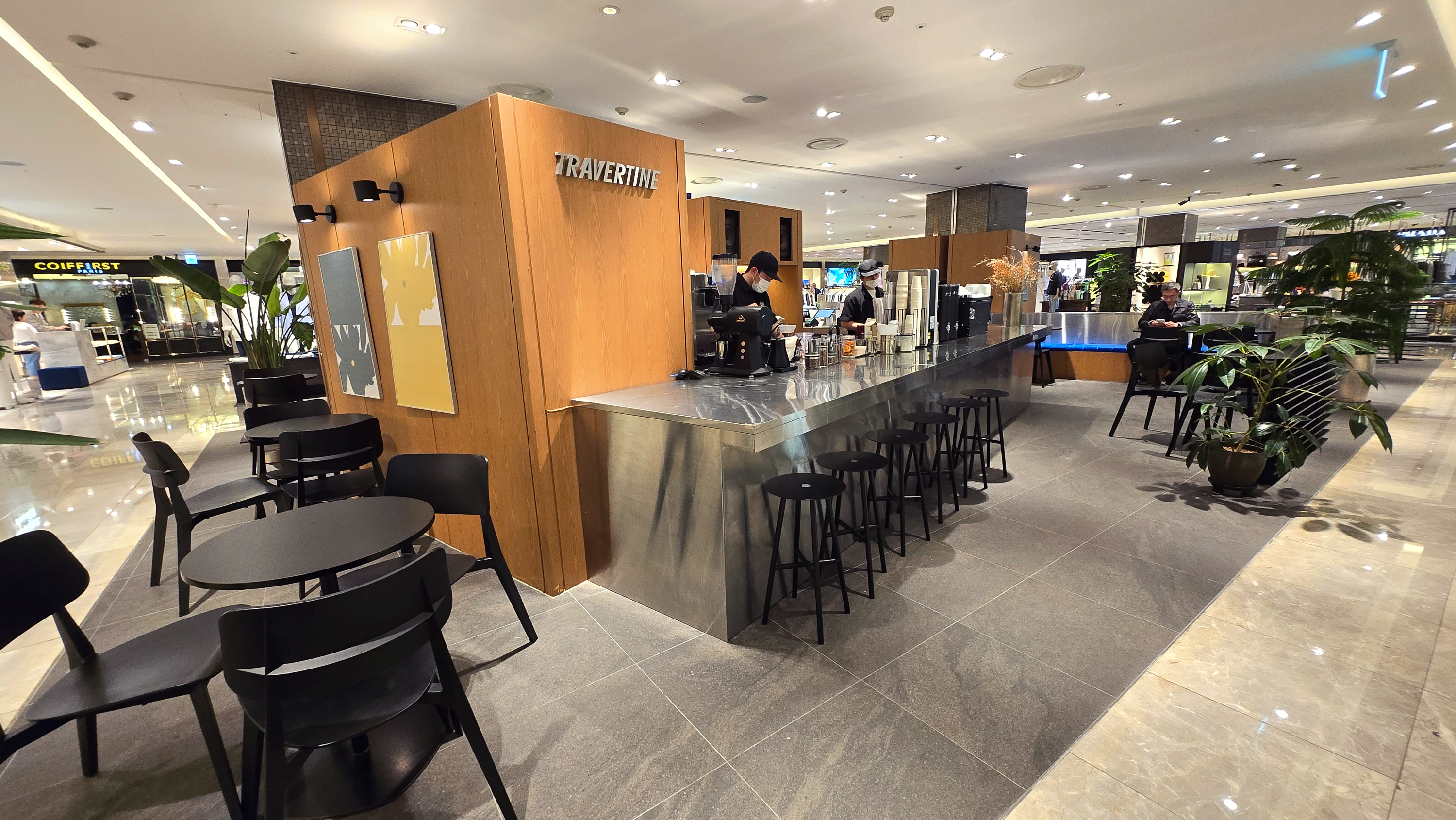 현대백화점 무역점 7층은 남성복 층이다. 여성인 난 남성복에 볼일도 없으면서 꾸준히 7층엘 들락날락 거리는데 그 이유는 바로 트래버틴 때문이다. 내 기준에 현재일 기준 무역점에서 가장 맛있는 커피를 즐길 수 있는 공간은 바로 트래버틴이 아닐까 생각한다.
